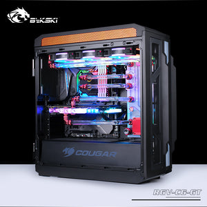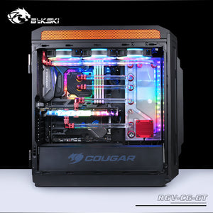 Our Bykski Distro Plate is designed to quickly and easily install a suitable hard tube water cooling system with a clean design into the Cougar Gemini T Phantom case.