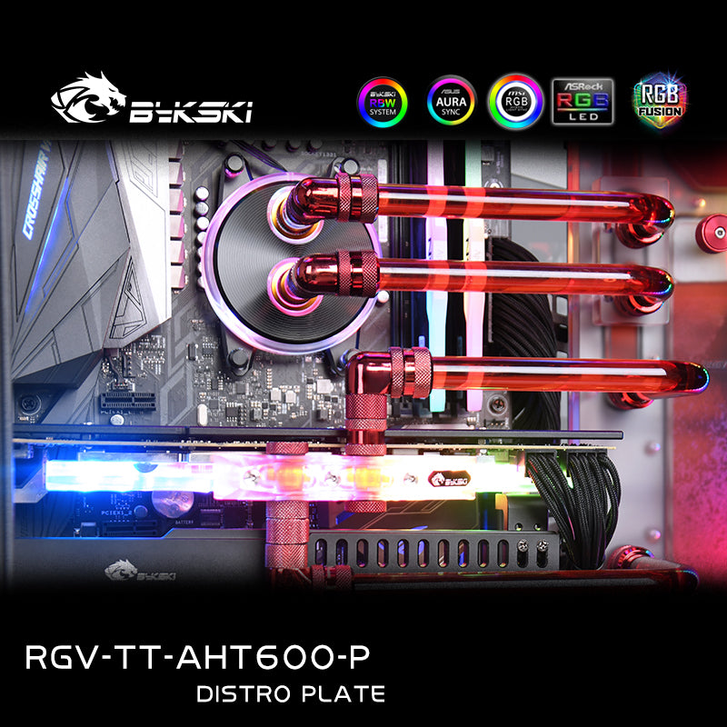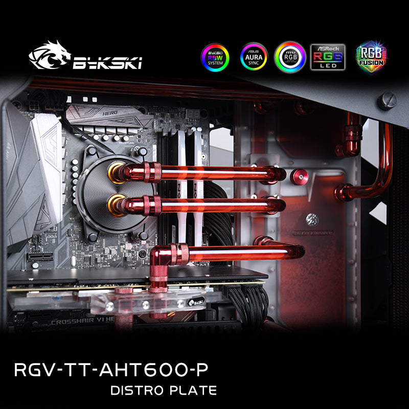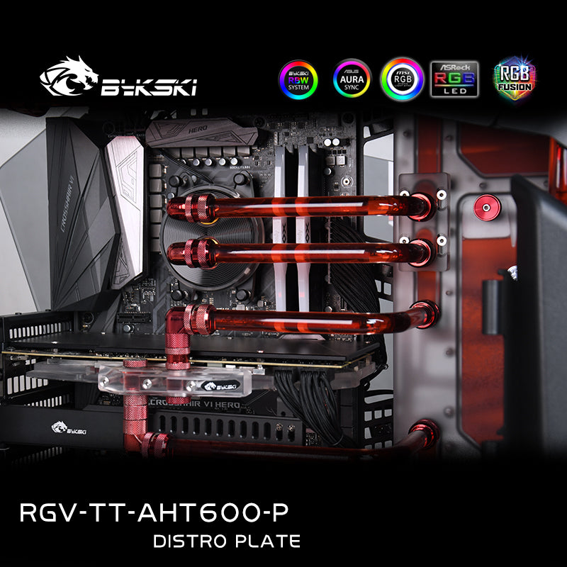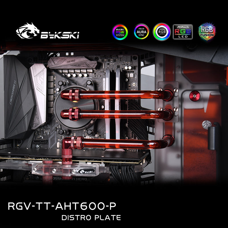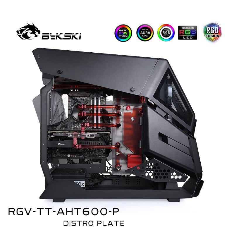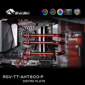 Our Bykski Distro Plate is designed to quickly and easily install a suitable hard tube water cooling system with a clean design into the Thermaltake AHT600 case.