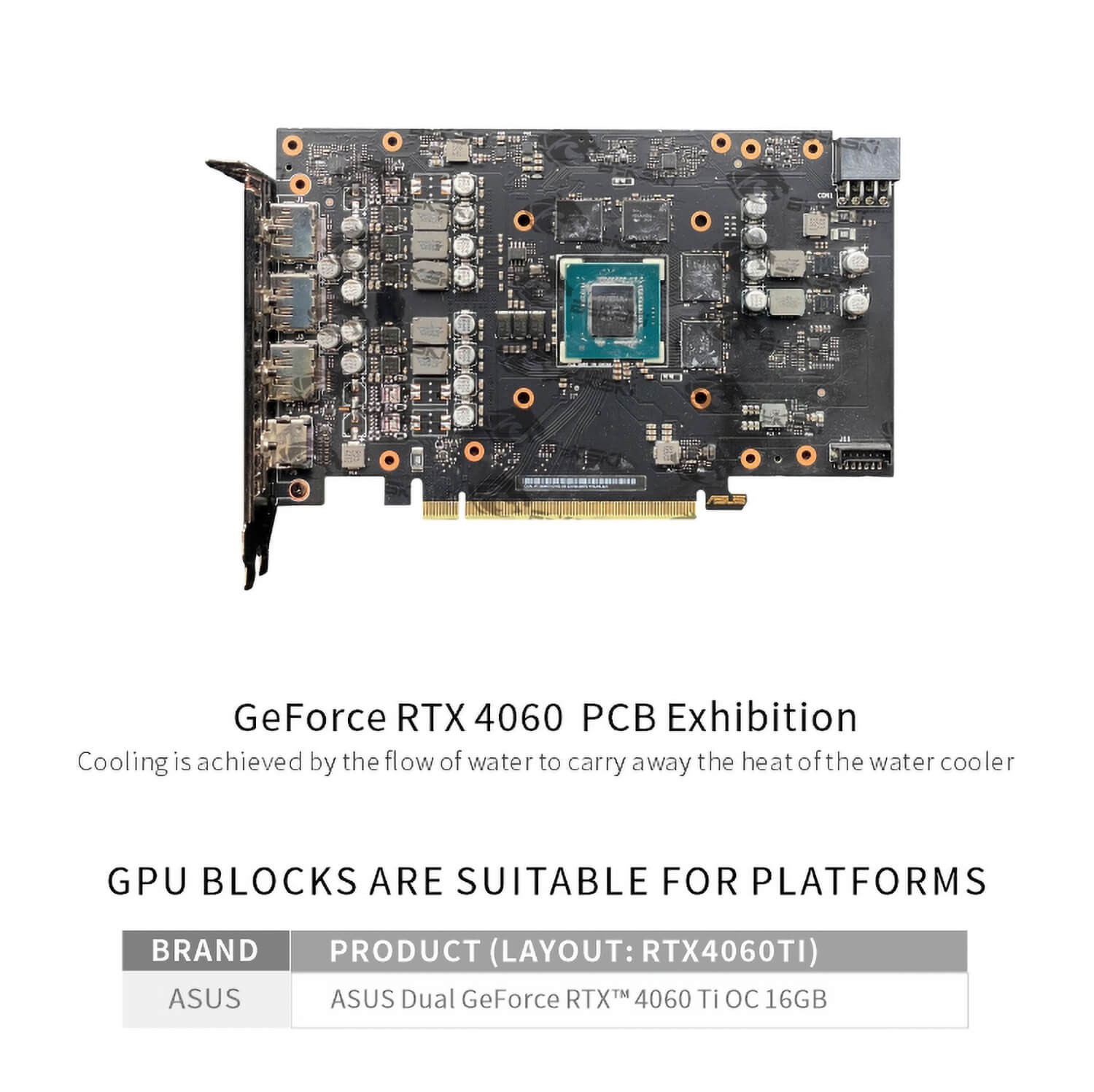 Bykski ASUS Dual RTX 4060 Ti OC 16GB GPU waterblock incl. backplate