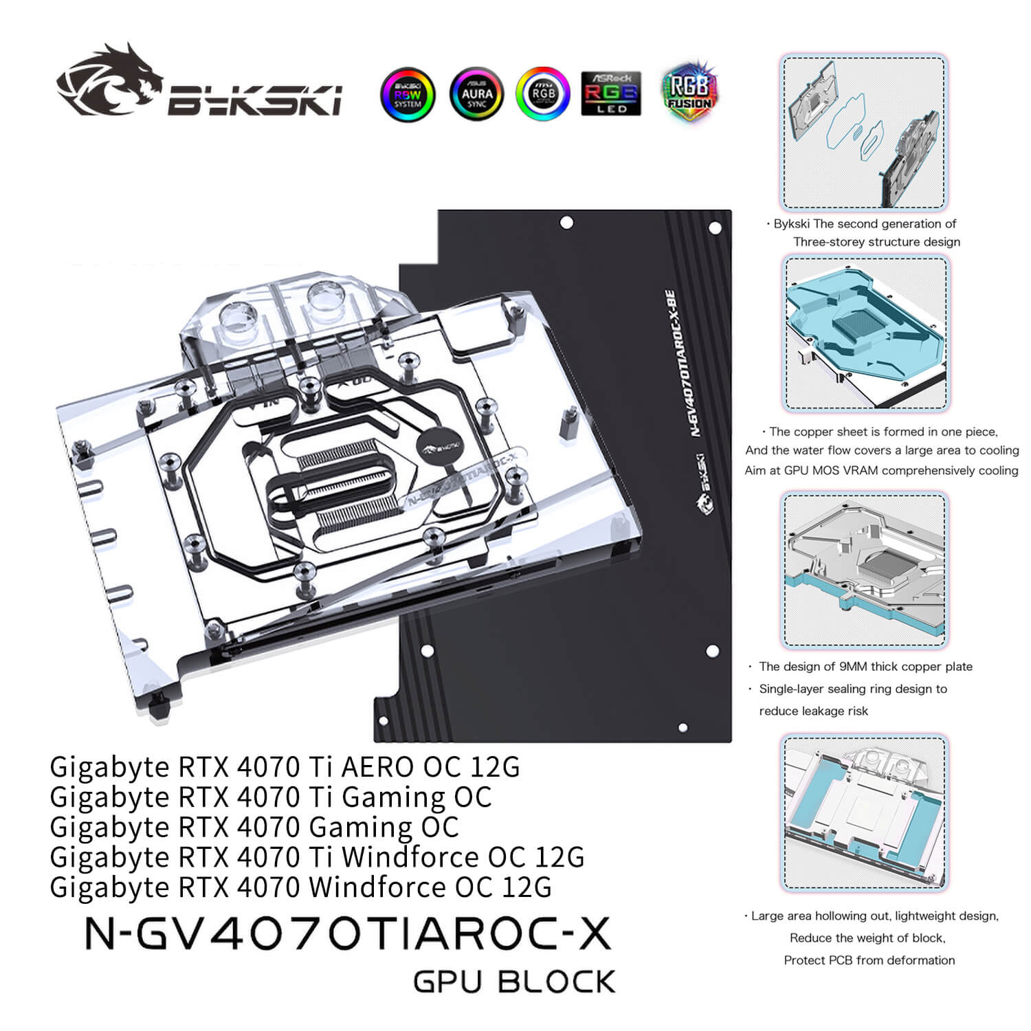 Bykski GIGABYTE RTX 4070 Ti Gaming OC GPU waterblock incl. backplate