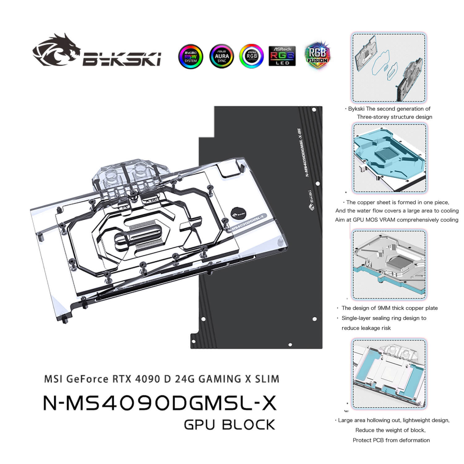 Bykski MSI RTX4090 24G GAMING X SLIM GPU waterblock incl. backplate